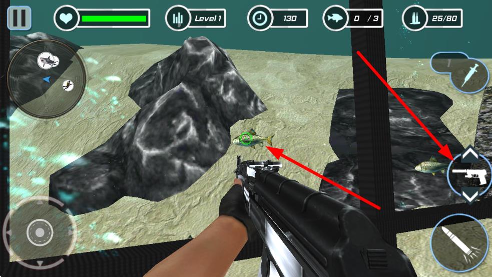 3、武器合理切换:面对小型快速鲨鱼使用射速快的武器,遭遇大型凶猛鲨鱼切换高威力武器,根据战况灵活调整装备。