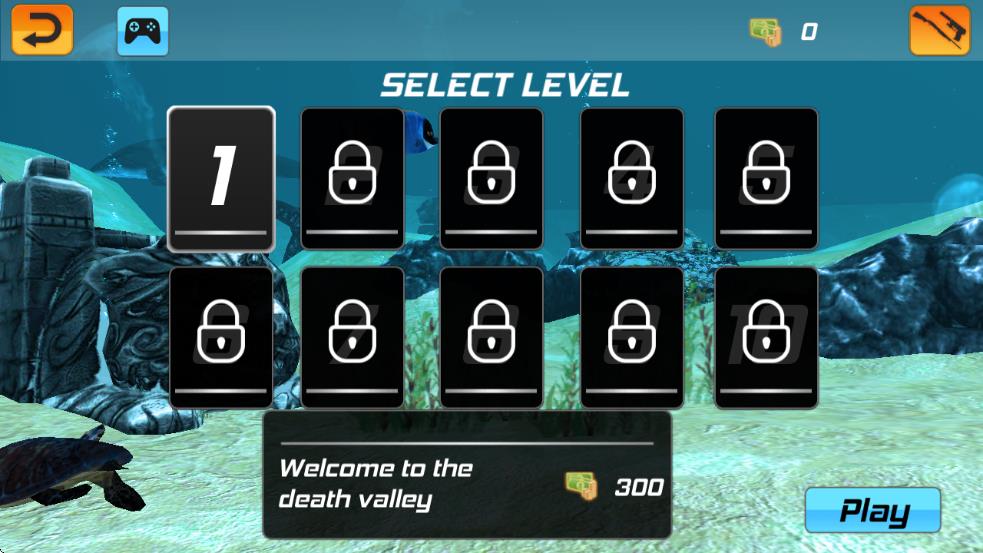 2、武器升级体系:通过捕猎鲨鱼获得资源,可对武器进行威力、射速等方面的升级,提升应对高难度海域的能力。