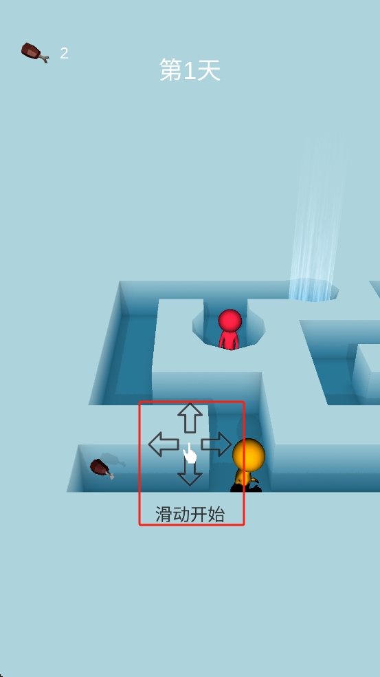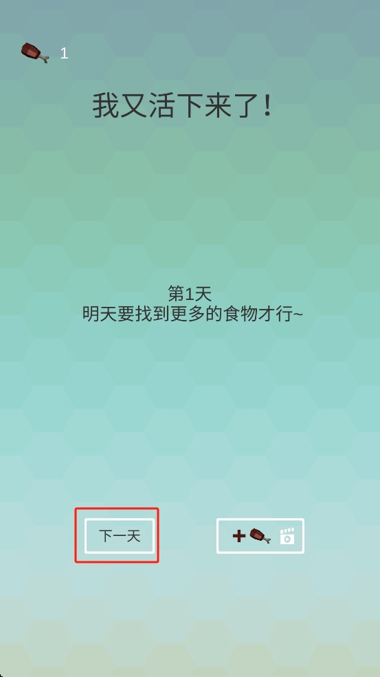 3、存活后可点击下一天进入新关卡,继续在迷宫求生,需规划路线,收集更多食物,应对后续的挑战。