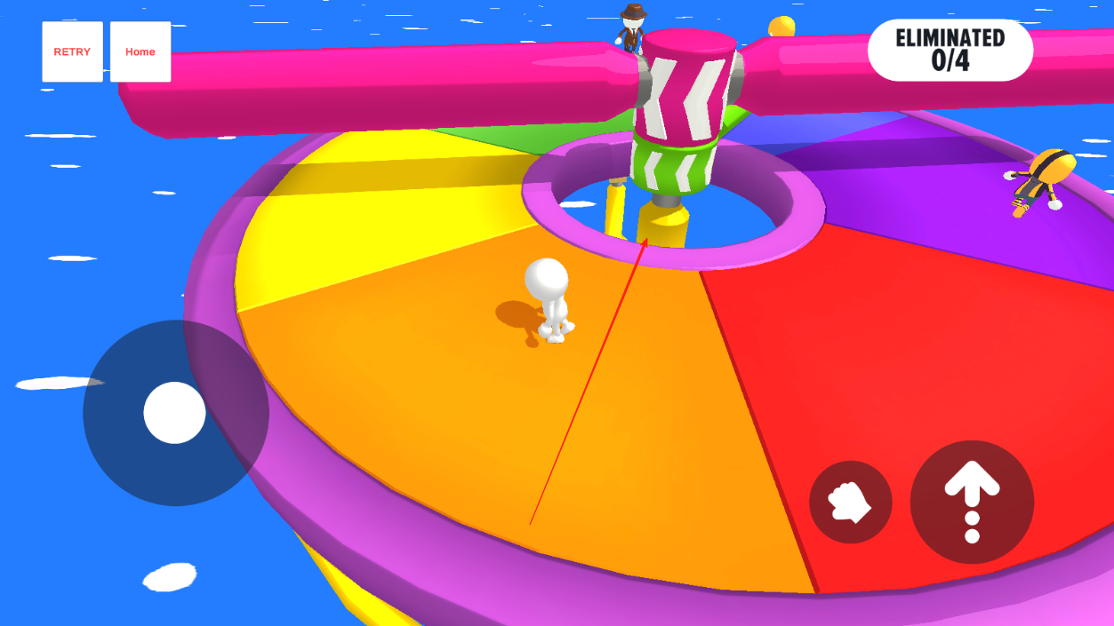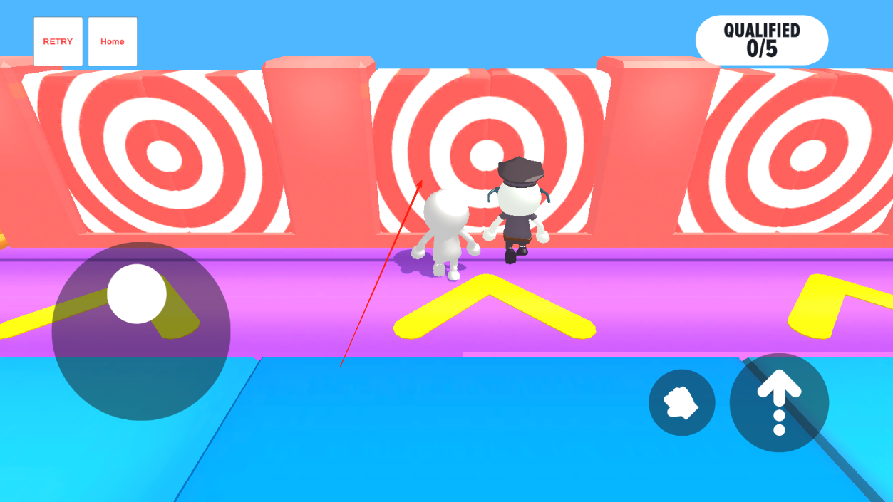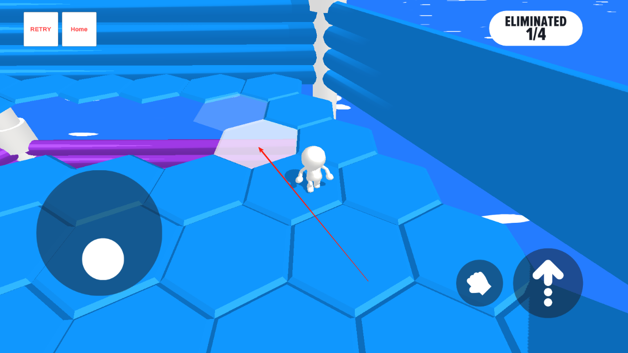 2、第二个模式,每经过一个方块,脚底下的方块就会消失,总共三层,撑到所有的小人都掉落水中之后,存活下来即可。