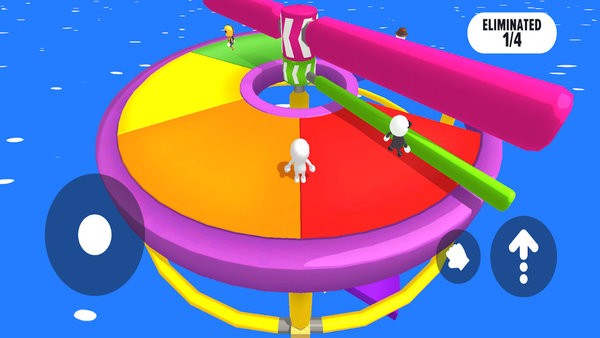 1、进入游戏后,选择第一个模式,上方杆子会不停旋转,脚底的方块可能会坍塌,注意不要掉落。