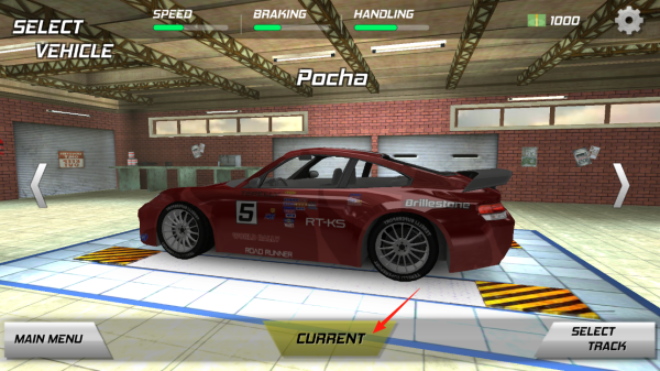 2、在车辆详情页,能看到赛车的速度刹车操控数据,点CURRENT确认用这辆车,再选赛道就能开跑,检查赛车属性,确认无误后,奔赴赛道,期待在拉力赛里大展身手。