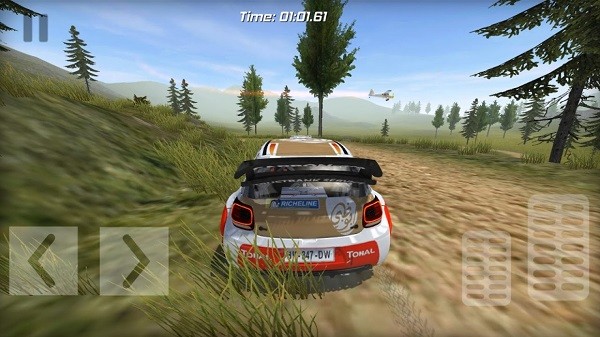 3、来到拉力赛道,赛车已就位,用左右按键控制方向,在砂石路上飞驰,躲障碍冲过终点,考验操控,感受赛车轰鸣,每过一个弯道都超刺激,握紧虚拟方向盘。