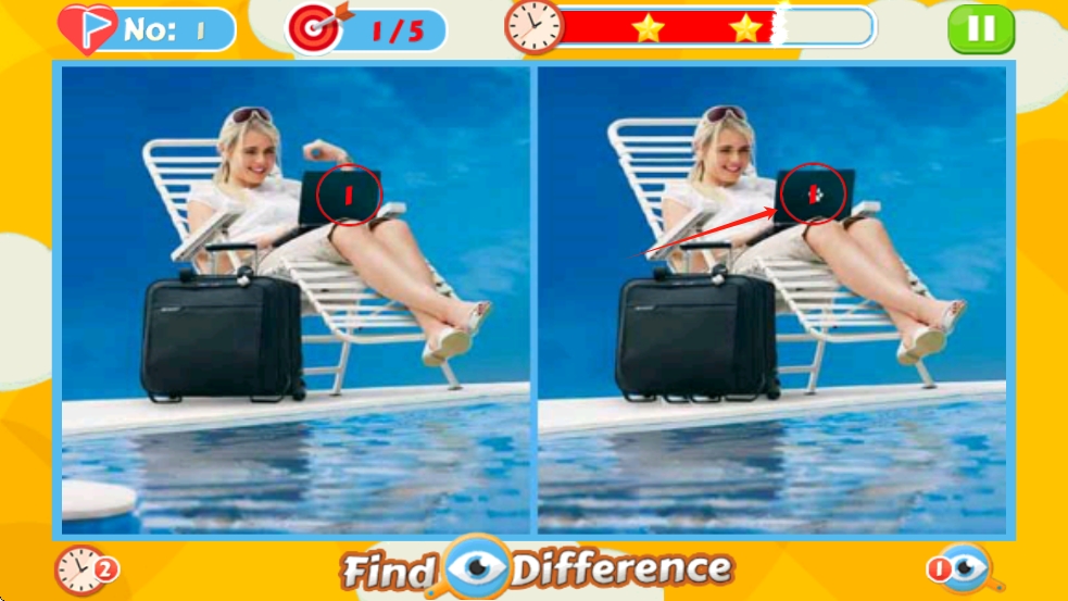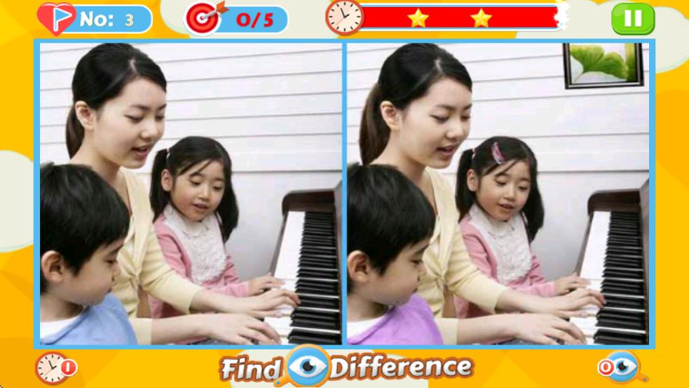 2、屏幕上同时显示两张图片,仔细比对细节,发现颜色、形状或元素的不同时,直接点击差异处,每次正确点击都会有明显反馈。