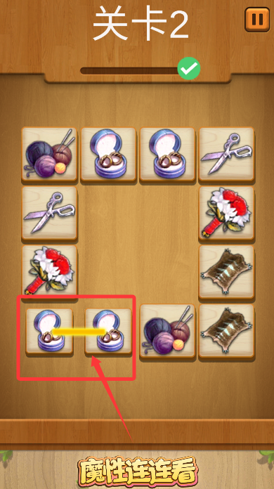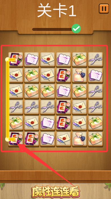 2、在关卡中快速识别相同图标的方块,通过画线连接完成配对消除任务。