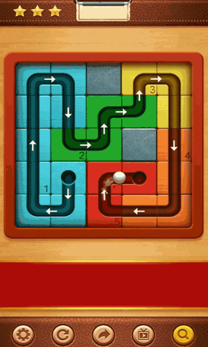 1、玩家需要通过旋转和平移不同形状的木块,连接它们之间的凹槽形成完整路径,确保球体能够顺利从起点滚动到终点。