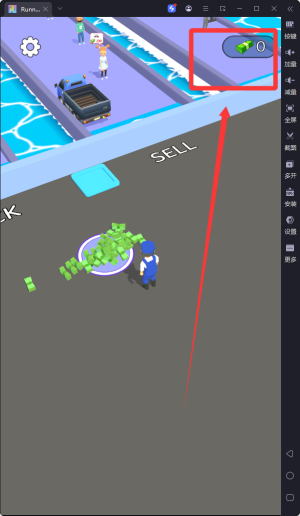 1、玩家需要通过滑动屏幕操控角色在工厂内灵活移动,将生产线上的产品从"STOCK"通道运送到"SELL"通道。