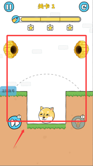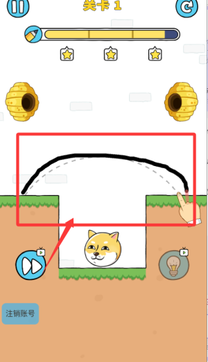 1、进入关卡后先观察狗头和蜂巢的位置,规划好画线路径,确保一笔就能画出完整的防护罩。