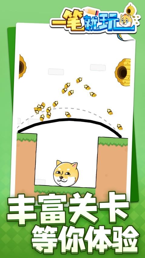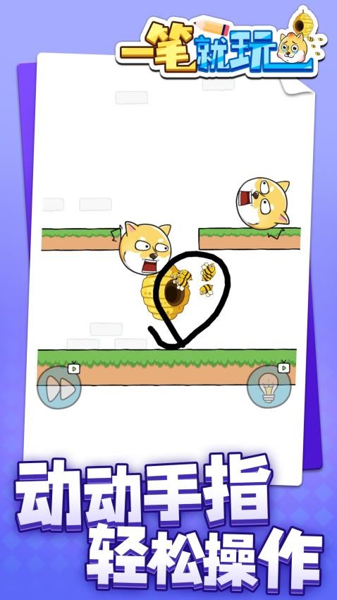1、创意绘画玩法,通过手指绘制防护线保护小狗免受蜜蜂攻击,操作简单但充满策略性,考验玩家的即时反应与空间规划能力。