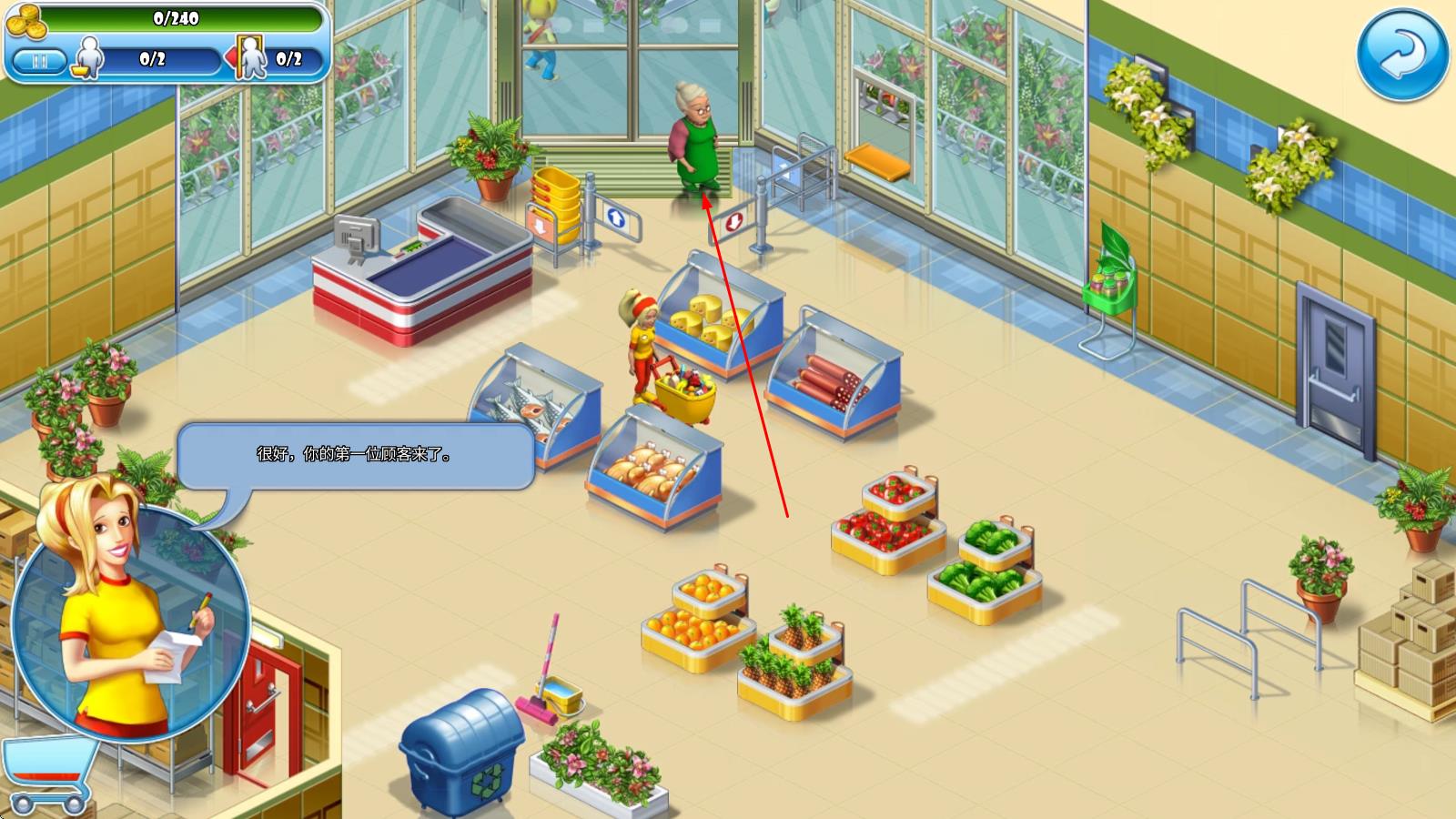 1、进入游戏后,跟随新手教程学习采购商品、布置货架,完成初始准备后打开超市大门,迎接首批客人,开启经营之旅。