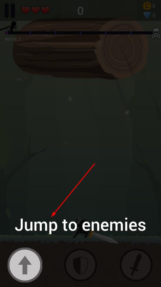 2、在进入战斗关卡看到Jump to enemies提示,点击对应按键让角色跳跃接近敌人,展开战斗。