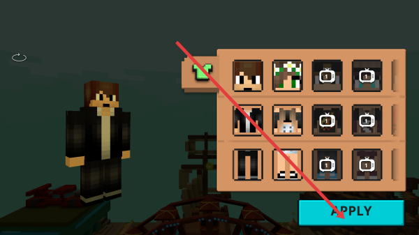 2、用右侧建造工具安全帽、加减按钮,收集资源木材、金币,选择喜欢的人物皮肤,点击APPLY。