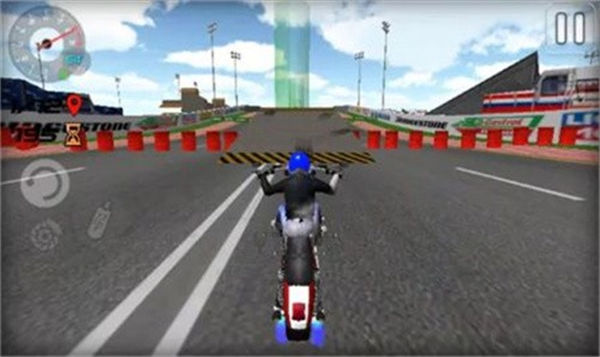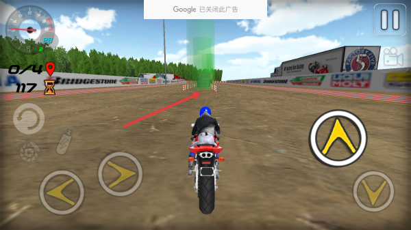 2、驾驶摩托时,利用虚拟按键控制方向、加速,在赛道留意弯道、障碍,提前调整,尝试特技。