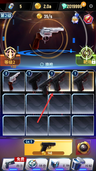 2、将相同的枪械拖到一起,进行合成,合成后变成更高等级的枪械。