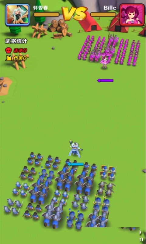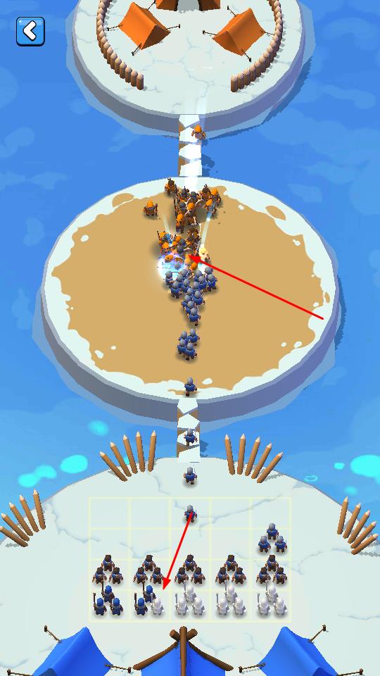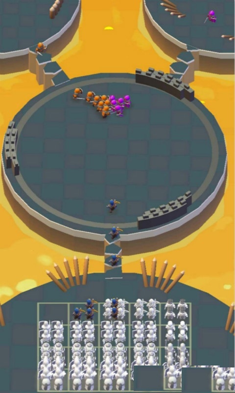 1、招募兵力对抗敌军:操作将领招募小兵,与敌军展开正面战斗,通过夺取对方小兵壮大自身队伍,逐步积累兵力优势,最终成为战场留存的胜者。