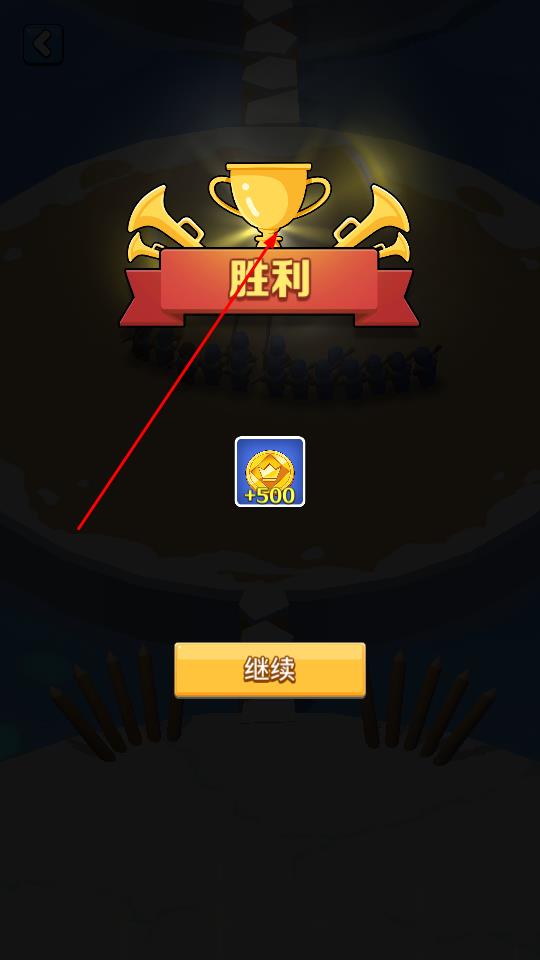 3、战斗获胜后获得金币奖励,点击继续回到营地,玩家既可进行新关卡挑战。