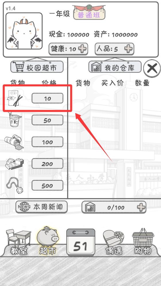 1、商品经营玩法充满策略性,需要观察市场行情波动规律,把握低价购入高价卖出的时机,合理规划资金周转,体验校园小商贩的赚钱乐趣与挑战。
