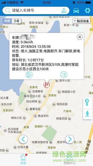 企业或个人通过绑定车牌号查询车辆所在的位置,在地图上标出车辆的坐标位置及实时轨迹。