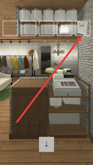 1、在商店货架的区域,点击柜子下面多出来的白色购物袋,收集该道具到我们的道具栏中。
