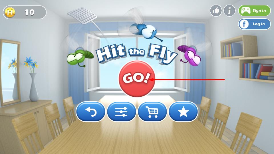 1、首先进入游戏界面后点击红色GO!按钮开启关卡,这是进入打苍蝇挑战的关键操作,开启游戏进程。