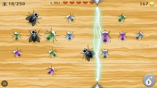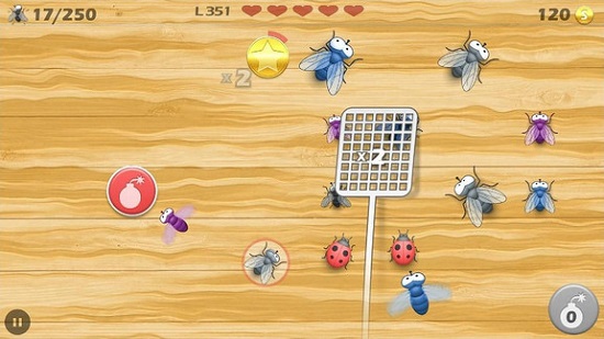 2、在游戏场景,滑动操控苍蝇拍移动,瞄准苍蝇点击拍打,努力击中目标完成关卡任务。