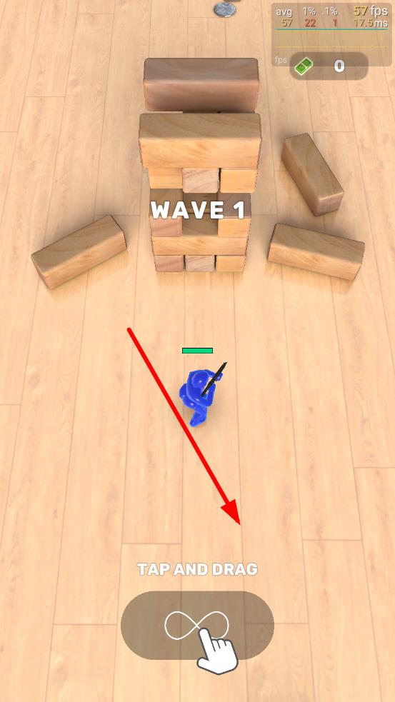 1、在初始界面按“TAP AND DRAG”提示,点击并拖动操作,收集基础士兵棋子,熟悉合成与移动基础操作,开启战斗准备。