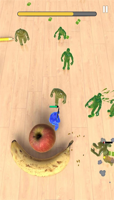 1、卡通趣味画风:以玩具士兵、僵尸为原型,搭配积木场景,营造出轻松又不失趣味的战斗氛围,视觉上给玩家带来独特体验,降低冒险的压迫感。