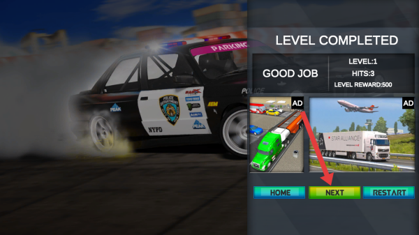 3、在游戏关卡完成后,需要点击结算界面右侧绿色NEXT的按钮,解锁并进入下一关关卡。