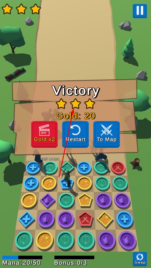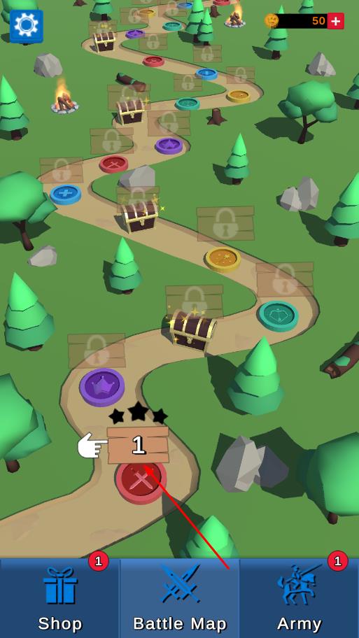3、合理消除、搭配兵种,守护路径,成功通关获奖励,解锁新地图关卡,强化army继续挑战。