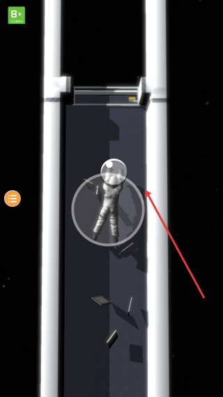 2、场景中留意漂浮碎片、通道等元素,规划移动路径,通过滑动调整宇航员方向、避开障碍。