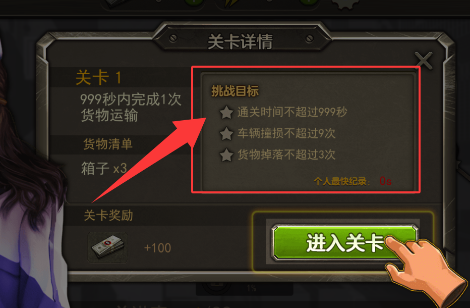 4、注意红色框框那里挑战目标,完成3颗星有奖励。