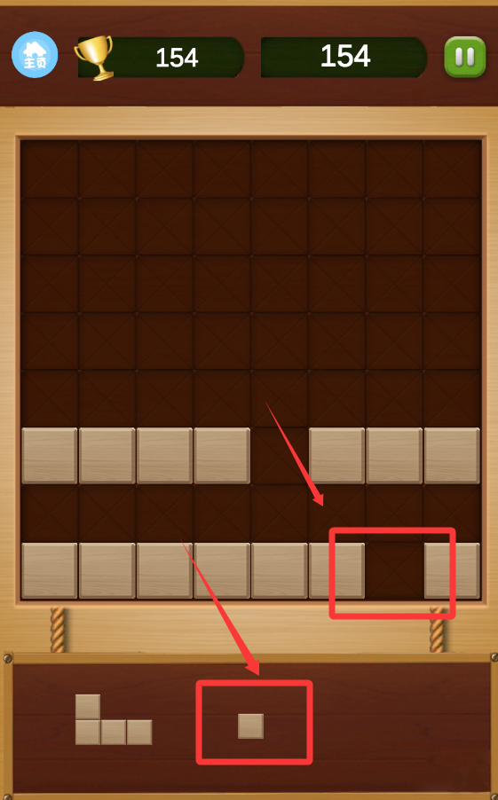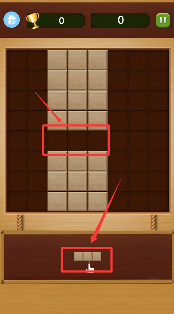 3、移动下面的长条方块放到红色框框的位置就能消除。