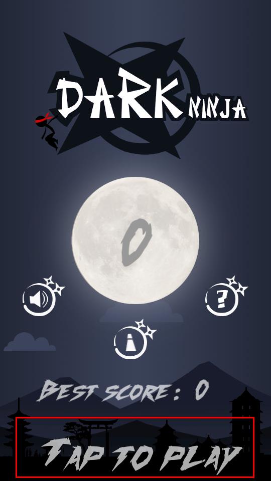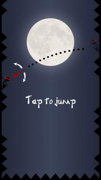 1、点击TAP TO PLAY按钮开启游戏,操控忍者角色踏入月夜场景,开启跳跃闯关挑战流程。