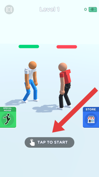 1、点击TAPTOSTART用于开始游戏,启动格斗对战,SPECIALMOVES特殊招式,绿色图标。