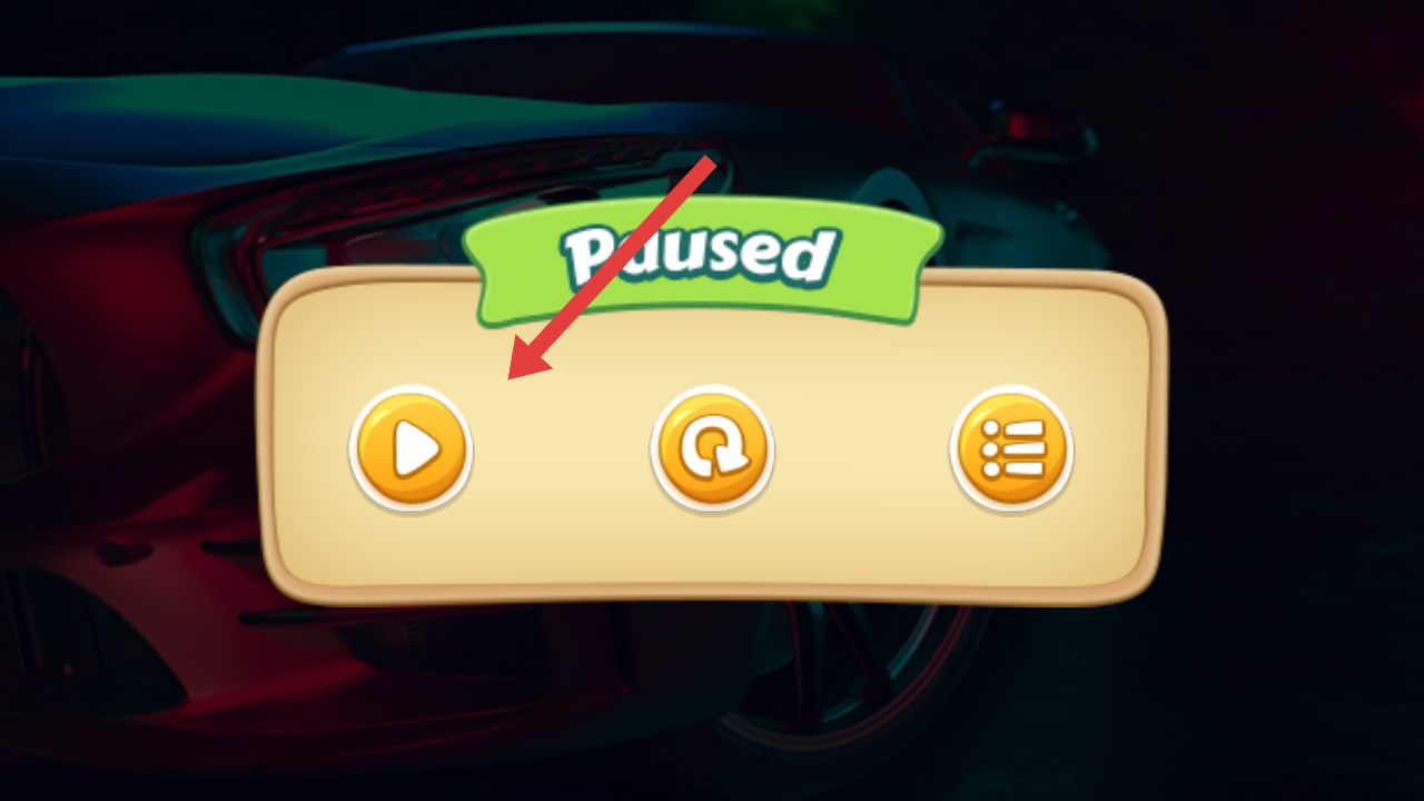 3、如果点击暂停游戏后,需要点击弹窗左侧三角箭头的按钮,可以恢复当前关卡的驾驶进程。