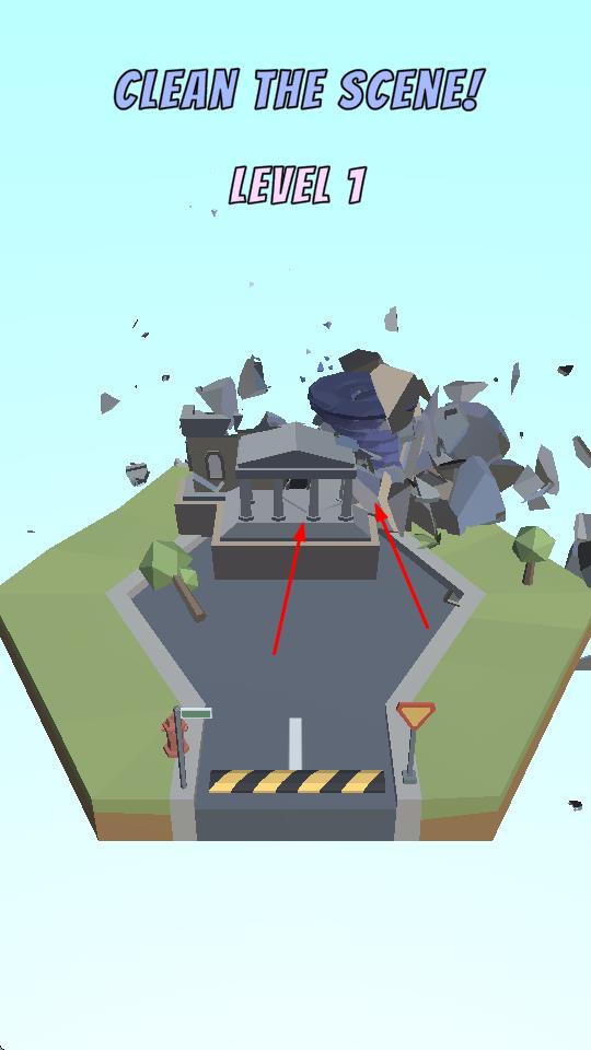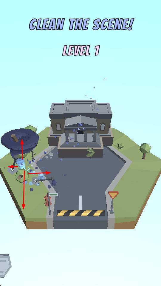 2、在关卡中,利用工具对场景内的建筑、障碍物等进行清理操作,逐步消除场景内的杂物。