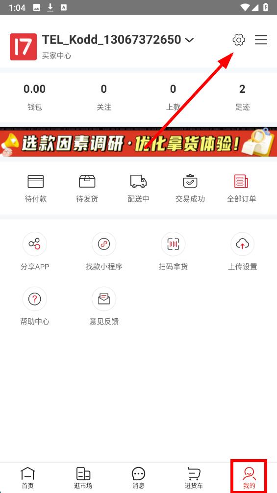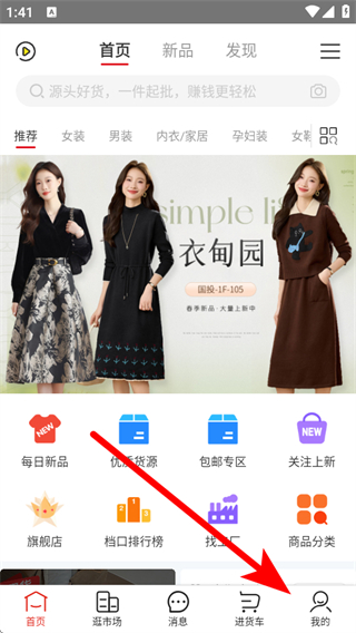 1、打开17货源网APP,点击右下角我的,进入个人页面。