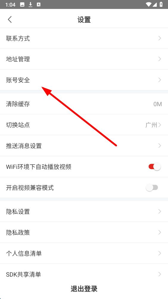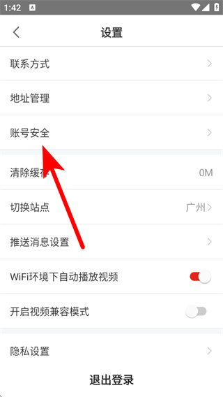 2、进入设置界面后,找到并点击账号安全选项,进入账号安全相关设置页面。