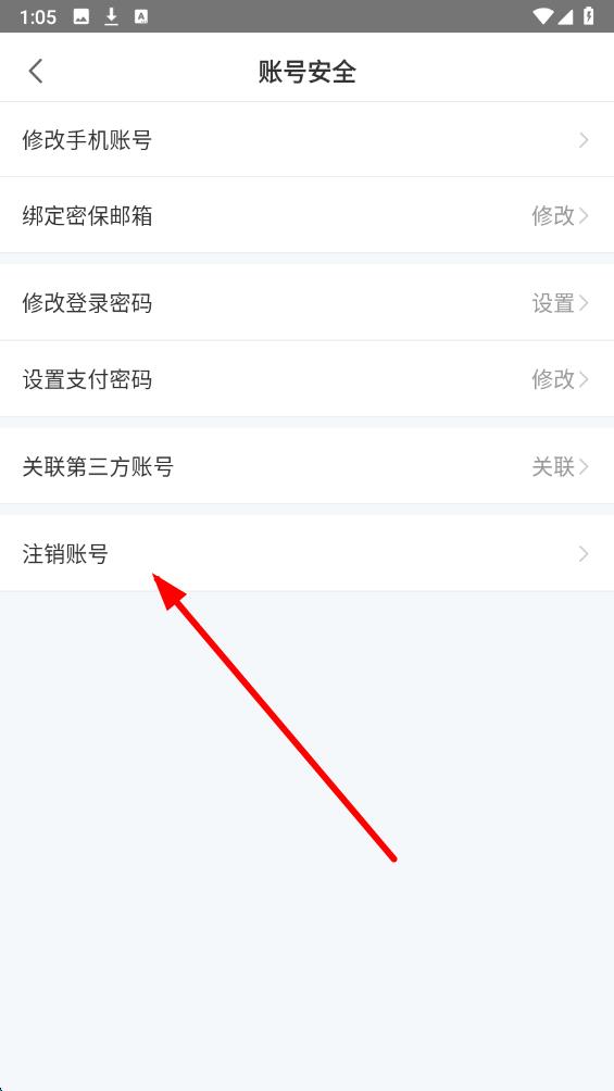3、在账号安全页面里找到注销账号选项,然后按照后续提示流程完成账号注销操作。
