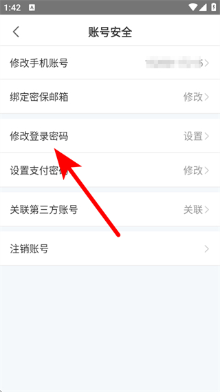 4、在账号安全页面,点击修改登录密码,按照提示完成密码修改操作。
