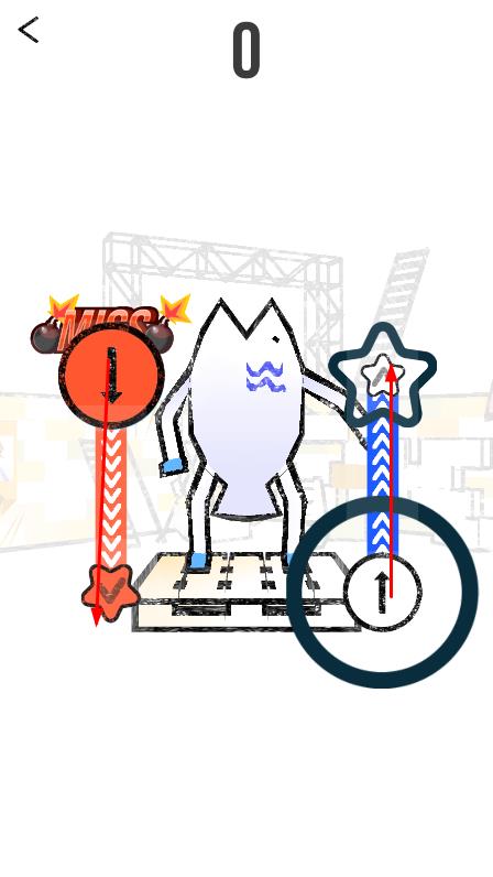1、进入游戏后,选择喜欢的鱼类角色和音乐曲目,等待音符从屏幕上方下落,准备跟随节奏点击触发舞步。