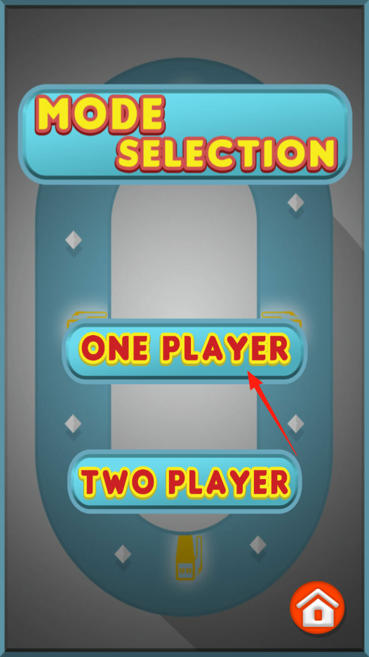 2、在模式选择页,有ONE PLAYER和TWO PLAYER选项,点击ONE PLAYER,进入单人赛车模式,操控一辆小车在赛道竞速,利用模式选择机制,决定游戏参与人数。