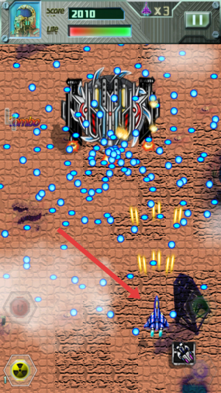 2、BOSS释放出密集蓝色弹雨时,需要快速调整战机位置,利用弹幕的间隙进行穿梭,保障自身的生存。