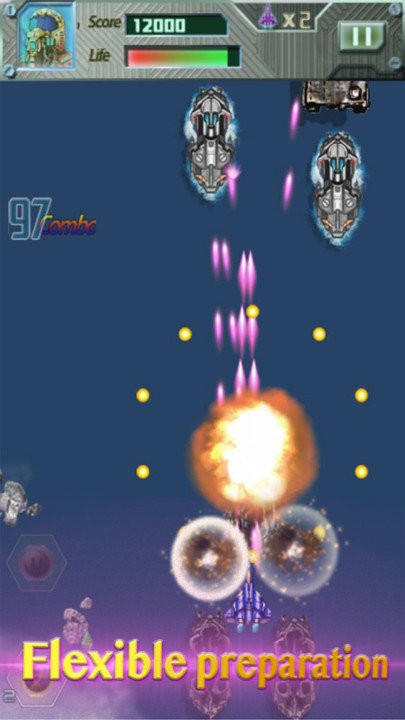 2、操作简便有趣:操作方式简单易上手,通过直观的手指点击即可完成战机移动、躲避与攻击,过程中融入趣味交互,即使新手也能快速适应,享受空战乐趣。