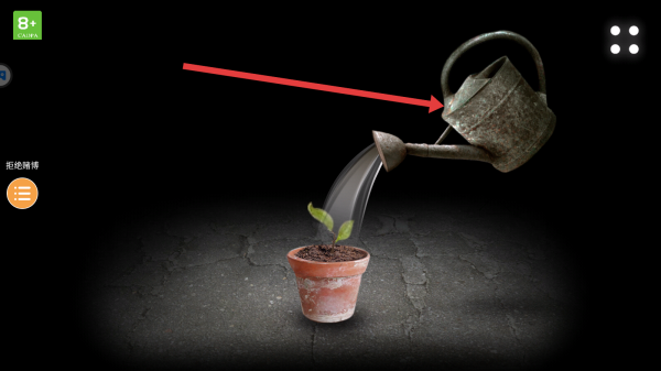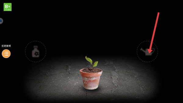 2、植物发芽后,留意生长状态,叶片缺水时点击右侧水壶图标浇水;需养分时,点左侧药剂瓶施肥。