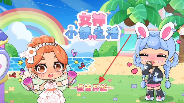 1、游戏开始界面,点击点击开始按钮,进入女神小镇生活游戏世界。