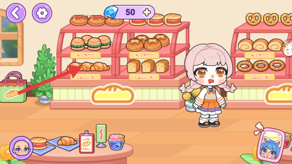 3、在面包店内,关注货架上的面包种类,可与角色互动,可能触发购买、制作等相关游戏任务。