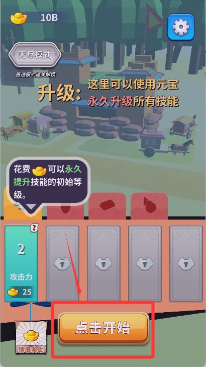 1、进入游戏后点击屏幕下方按键开始游戏。