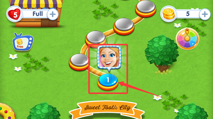1、选择游戏主界面已解锁的关卡1,点击进入色彩缤纷的糖果世界。
