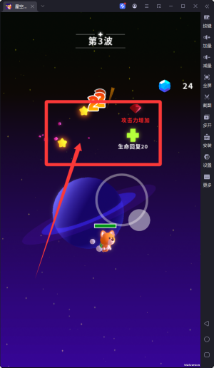 1、夜空元素融入,游戏巧妙地将璀璨星辰和神秘夜空融入关卡设计,每个场景都呈现出浪漫梦幻的视觉效果,让玩家仿佛置身于浩瀚宇宙中作战。